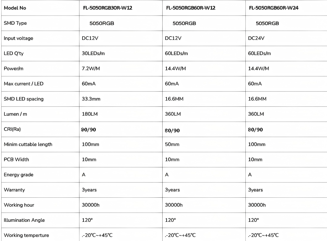 Looking for RGB LED strip light? Lightstec offers 30LED/M,60LED/M color change LED strip light for both indoor and outdoor use.5050 constant voltage LED strip light series. Lightstec 5050 LED strip light series is high brightness led strip light. 60ma,18-20lm each led. Ra80 and Ra90 were available. DC12V and DC24V vision. 60led/m 14.4W LED strip light is widely used in hotels, shopping malls, kitchen illuminating. The customized length and customized design are warmly welcome.