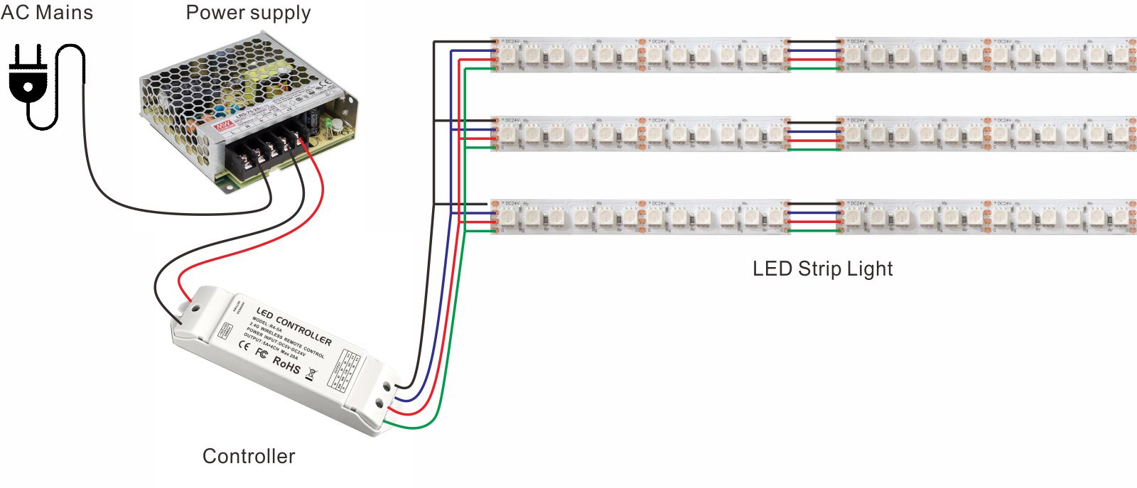 Connect the LED strip light to power supply.