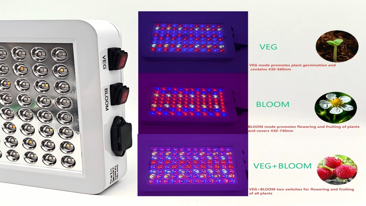 | VEG/BLOOM Mode | BLOOM mode can facilitate plants to bloom and bear fruit, its wavelength spectrum covers 430-740nm, VEG mode promotes plant germination, its wavelength spectrum covers 430-660nm. | |||||