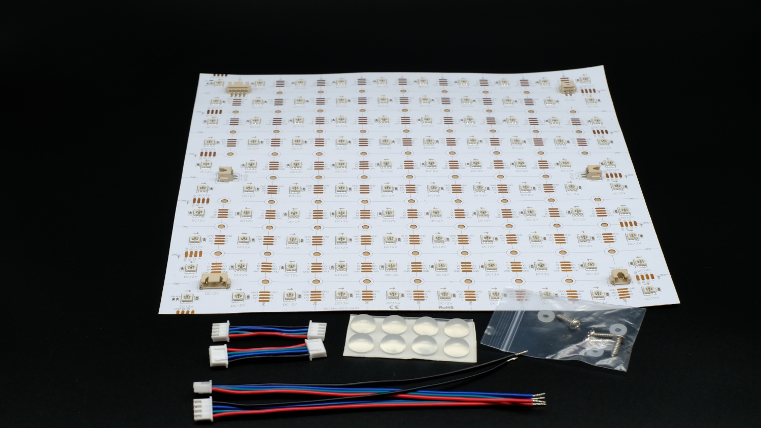 These sheets pair with RGB LED controllers, enabling static colors, dynamic fades, and adjustable speed and brightness settings. The bendable, cuttable design makes them ideal for custom LED sheet lighting applications such as signage, countertops, display boxes, decorative backlighting, and LED light diffuser sheet installations. For simple installation, each LED light panel sheet comes with strong double-sided adhesive backing. Options include IP20 (indoor) and IP54 (semi-outdoor) protection, giving you flexibility for different project environments. Includes: 1 × RGB LED panel sheet 2 × 4P connection cables 2 × 4P input cables 8 × Anti-collision silicone particles