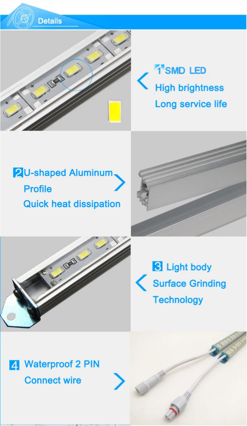 LED Bar Light 5730 5630 2835 0.2M~1.2M DC12V/24V with Aluminium shell or Aluminium shell +pc cover