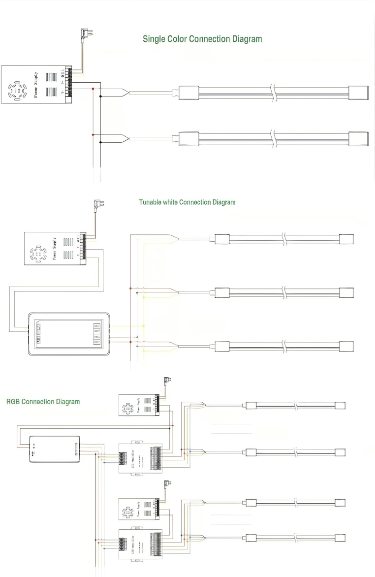 Light Color: Monochrome, Tunable White, RGB, RGBW, DMX512 Pixel RGB, SPI Pixel RGB