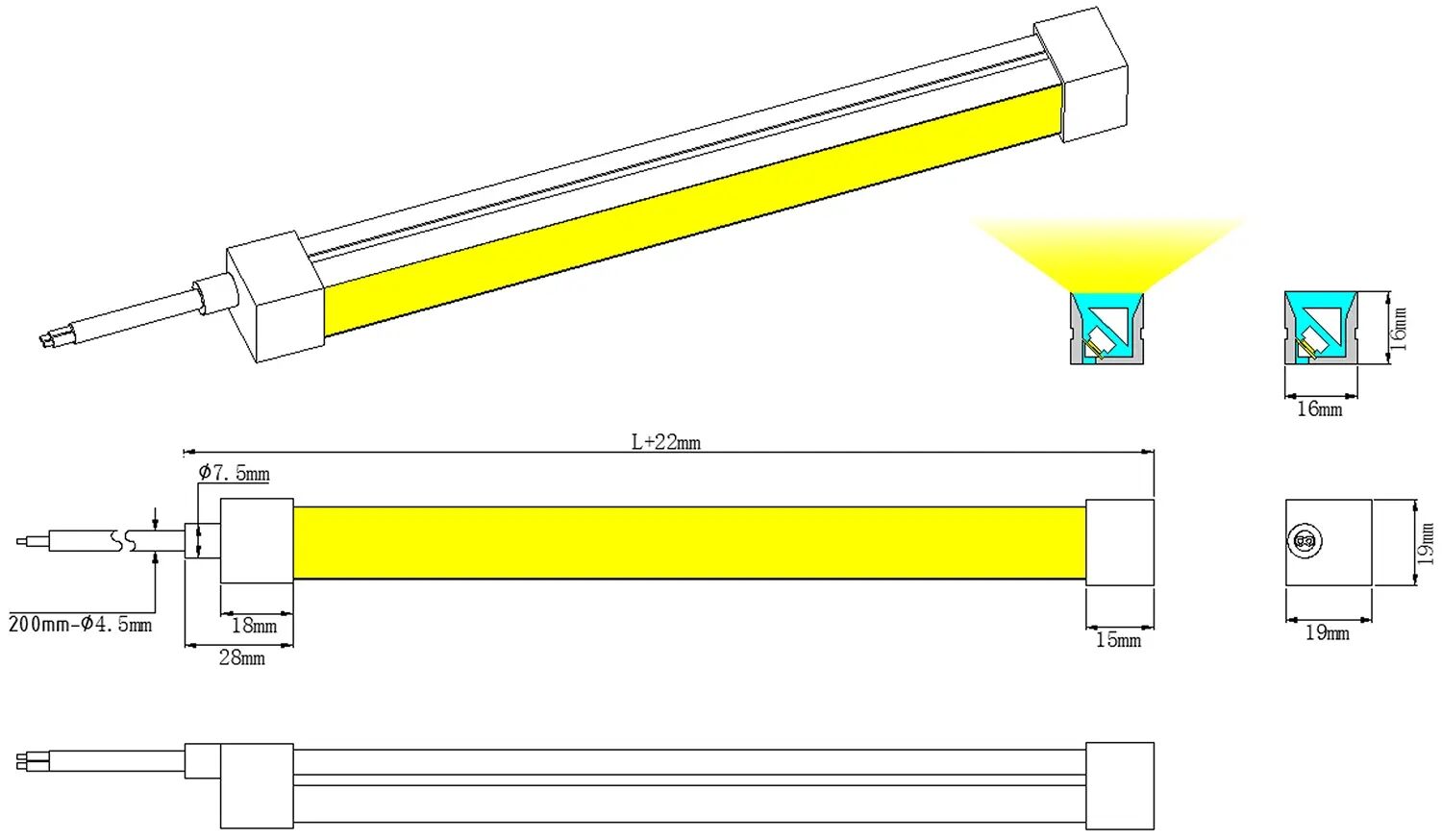 LED Neon Flex Light is a flexible linear uniform light that uses high brightness SMD LED strips as the internal light source and is wrapped with silicone, PVC or PU(Polyurethane) to diffuse the light.