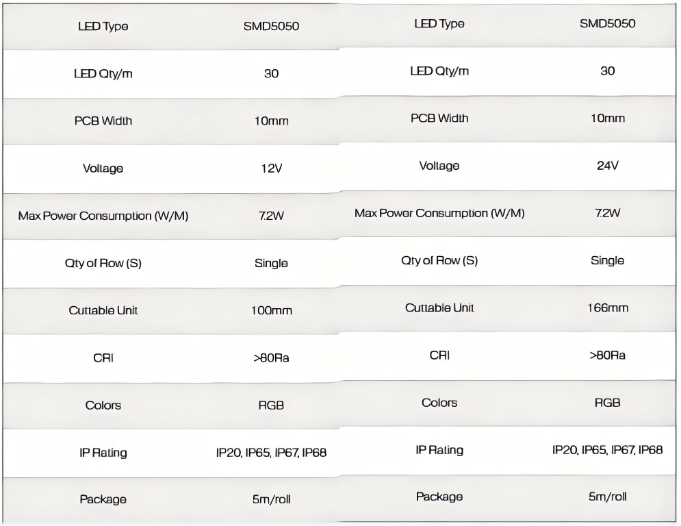 Looking for RGB LED strip light? Lightstec offers 30LED/M,60LED/M color change LED strip light for both indoor and outdoor use.5050 constant voltage LED strip light series. Lightstec 5050 LED strip light series is high brightness led strip light. 60ma,18-20lm each led. Ra80 and Ra90 were available. DC12V and DC24V vision. 60led/m 14.4W LED strip light is widely used in hotels, shopping malls, kitchen illuminating. The customized length and customized design are warmly welcome.