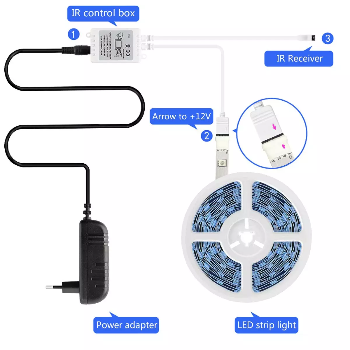 6.Please avoid touch the LEDs during installation and wearing electrostatic ring is recommend during the installation.Connect the LED strip light to power supply.