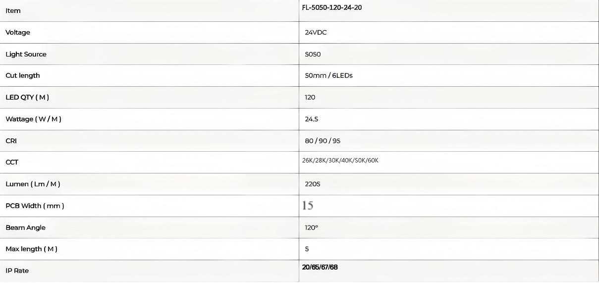 LED Quantity: 120 LEDs per Meter