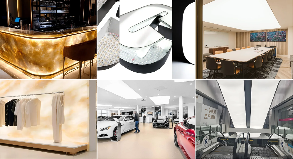 LED sheet lights are widely used for signage, backlighting, architectural accents, and retail displays. They deliver uniform illumination for translucent materials, illuminated signs, large ceilings, and exhibition setups, making them ideal for both commercial and decorative lighting.