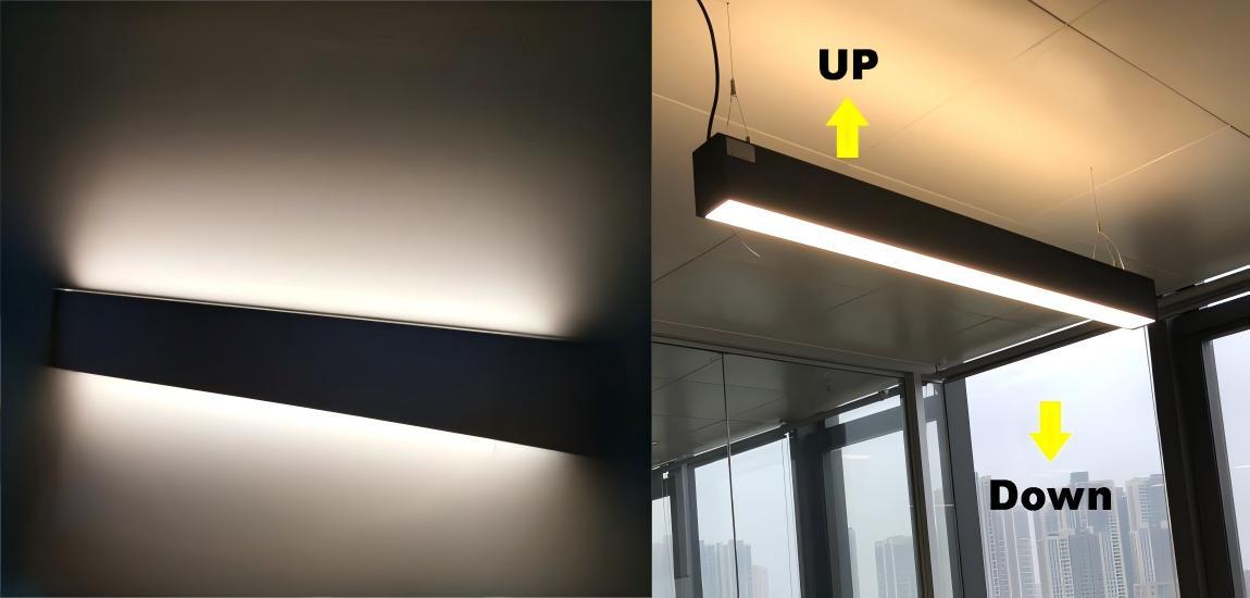 product Features: Tough and Durable Construction: With a rugged one-piece Roll sheet metal bottom shell housing, the light boasts solid quality and reliable performance, built to last in various conditions. Enhanced Lifespan: The separation of the LED module and the driver maintains component integrity and prolongs service life, ensuring that our LED light outlasts competitors. Color Temperature Selection: Customize the ambiance with CCT variants—choose between warm 3500K, neutral 4000K, or cool 5000K color temperatures, all conveniently managed via a simple DIP switch setup, effectively reducing SKU requirements and inventory complications. Aesthetic Compatibility: With a subtle design, the Up/Down LED Linear Light complements most office ceilings and can seamlessly integrate into modern office spaces, supermarkets, and meeting rooms.