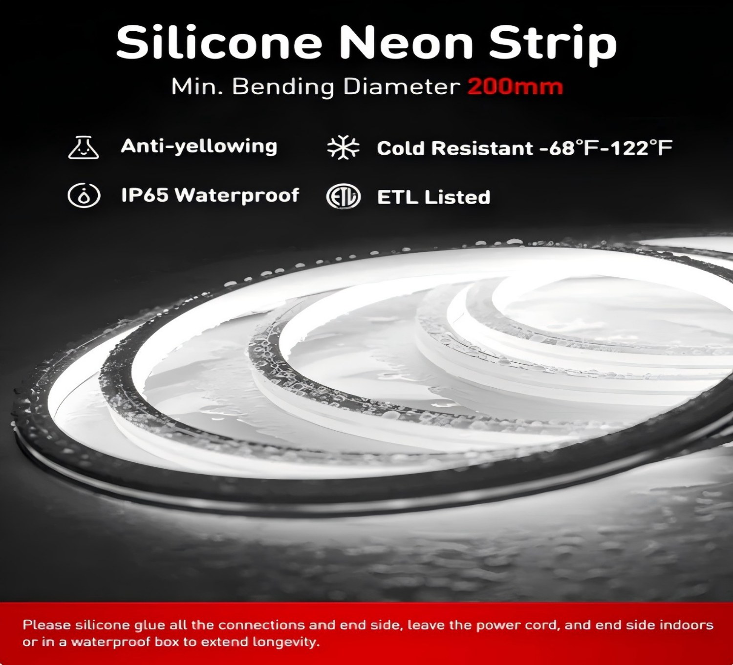 5. Safe. Unlike traditional glass neon lights, which require a high voltage of up to 15,000V for regular operation, the LED neon flex light operates at 12V or 24V and is safe to use as it will not break and has low heat dissipation.